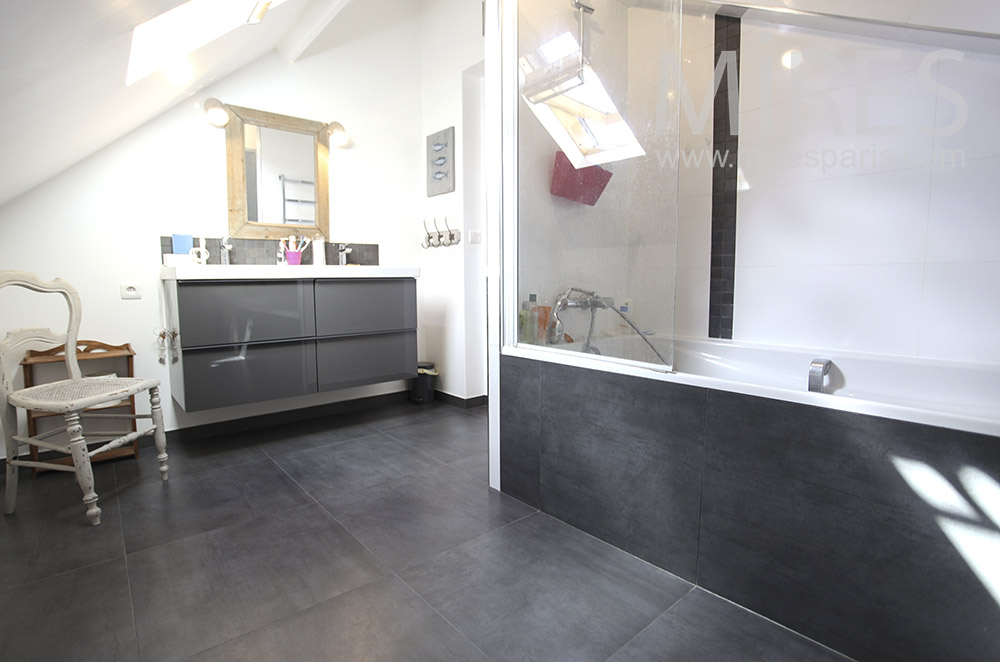 C1595 – Gray and white baths Visite rapide Visite complète Visite par pièce Ile-de-France EntryLoungeDining RoomKitchenLibraryOfficeStaircaseBedroomBathroomBedroomBedroomBathroomHome cinemaBasementTerrace