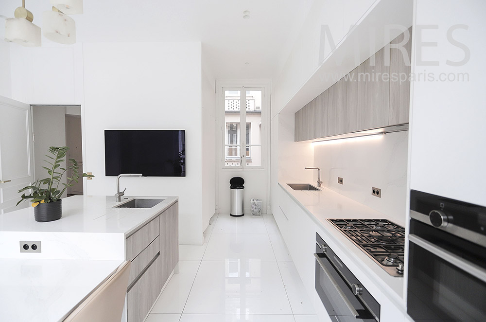 C2090 – Beautiful white kitchen, central island Visite rapide Visite complète Visite par pièce Paris EntryLoungeDining RoomKitchenCorridorBedroomBedroomBathroomChild bedroomBedroomStaircase