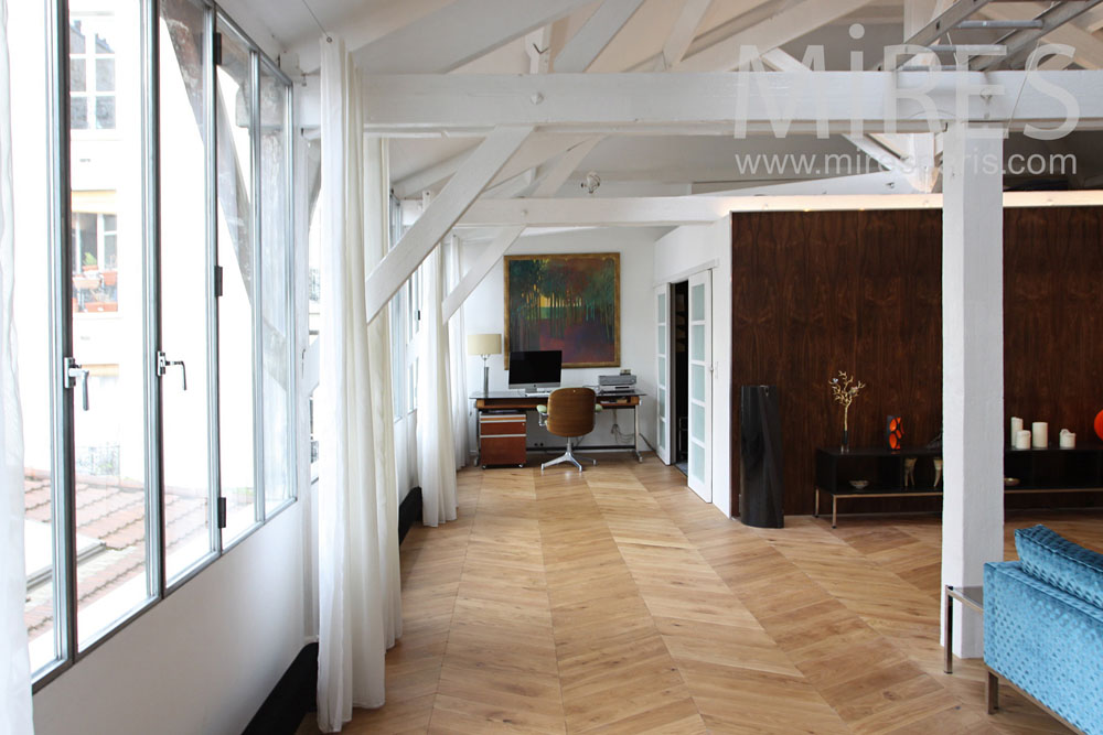 C0243 – Desk and bedroom Visite rapide Visite complète Visite par pièce Paris BathroomOfficeAmerican KitchenDining RoomLoungeEntry