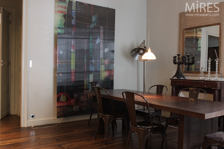 C0667 – Chaises en fer, table en bois foncé Visite rapide Visite complète Visite par pièce Paris Salle de bainSalle de jeuxChambre d'enfantSalle de bainSalonCuisine ouverteBureauChambreSalle à mangerSalon