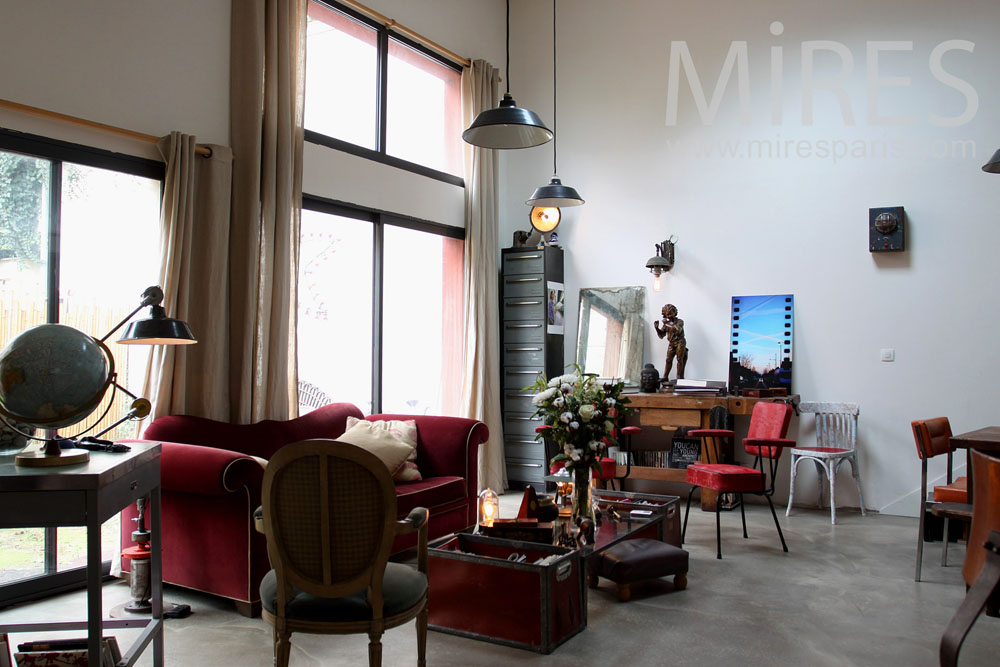 C0761 – Living room polished concrete Visite rapide Visite complète Visite par pièce Ile-de-France BedroomOfficeBedroomAmerican Kitchen