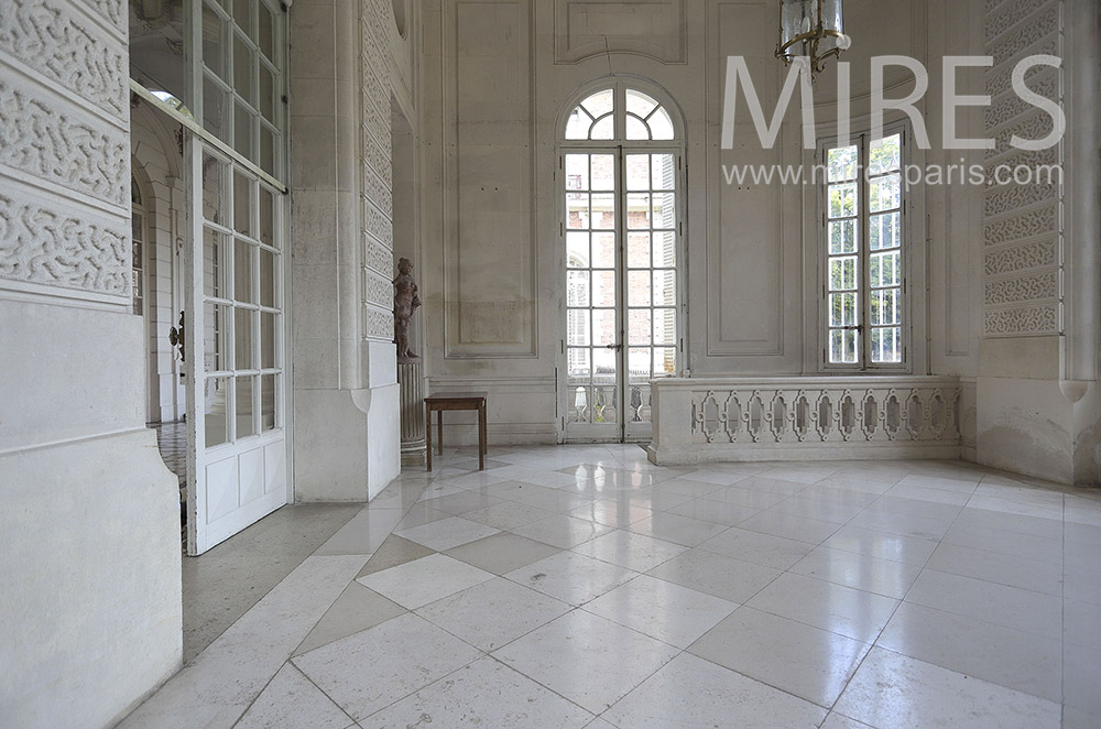 C0205 - Grand château Visite rapide Visite complète Visite par pièce Centre EntréeEntréeBibliothèqueSalonSalonEscalierChambreChambreSalle de bainChambreSalle de bainSalonSalonSalon