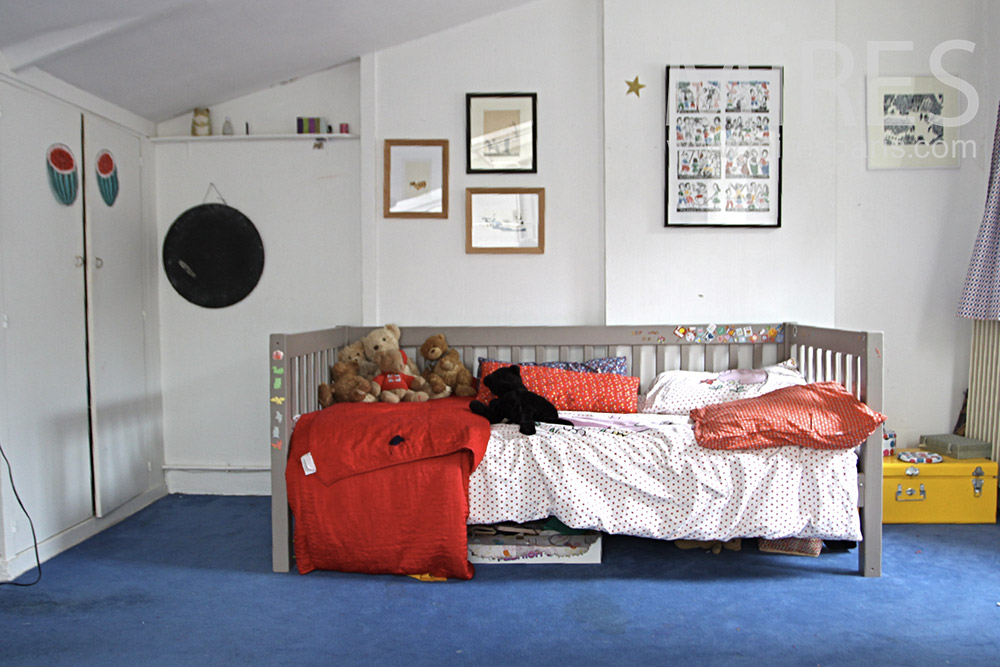C0695 - Petit loft accueillant Visite rapide Visite complète Visite par pièce Paris SalonBibliothèqueSalonCuisineChambreChambre d'enfant