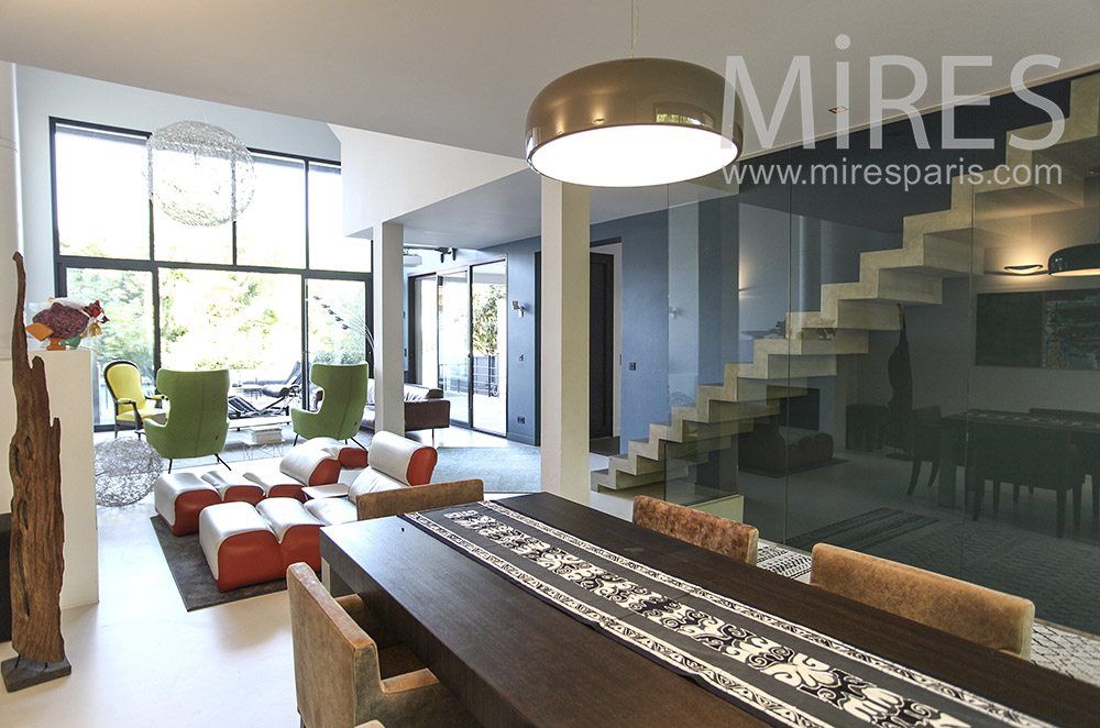 C1611 - Maison contemporaine avec piscine Visite rapide Visite complète Visite par pièce Île-de-France EntréeSalonSalle à mangerCuisineCuisineSalle à mangerEscalierSalonChambreSalle de bainBureauChambreSalle de bainHome cinemaRooftopBuanderiePiscine extérieureTerrasseGarage