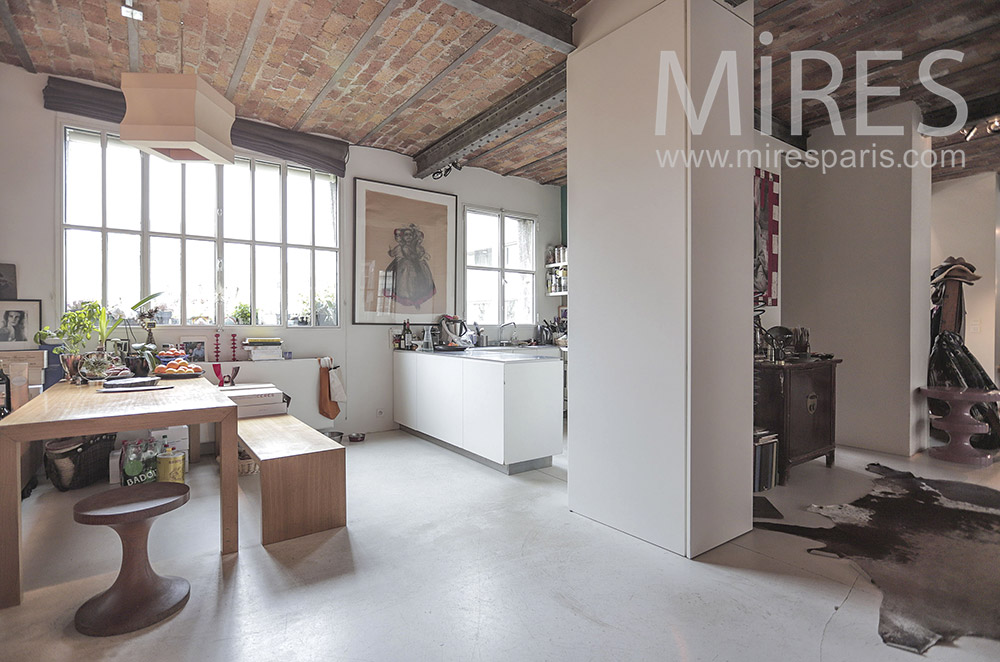 C1989 - Loft avec grand rooftop Visite rapide Visite complète Visite par pièce Paris SalonSalonCuisineChambre d'enfantBureauChambreSalle de bainEscalierChambreSalonRooftopEscalierCour