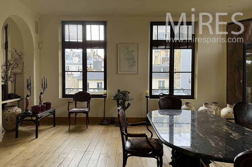 C2349 - Triplex Visite rapide Visite complète Visite par pièce Paris [:fr]Salle à manger[:en]Dining Room[:]SalonSalonSalle à mangerTerrasseEscalierChambreSalle de bainTerrasseDressingSalonSalle de bainEscalierCuisineCuisineCouloirChambre[:fr]Salle de bain[:en]Bathroom[:]ChambreEntrée