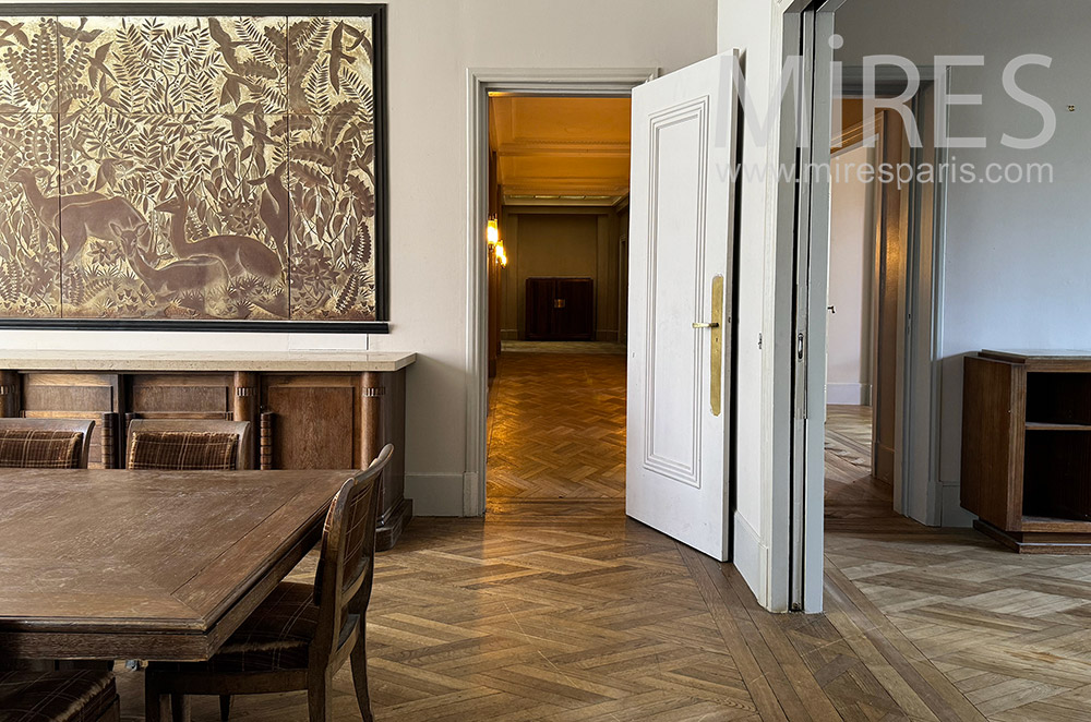 C2350 - Appartement vintage Visite rapide Visite complète Visite par pièce Paris SalonSalle à mangerCuisineSalonCouloirChambreCouloir[:fr]Salle de bain[:en]Bathroom[:]ChambreChambreRooftopEntrée