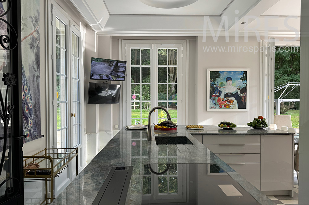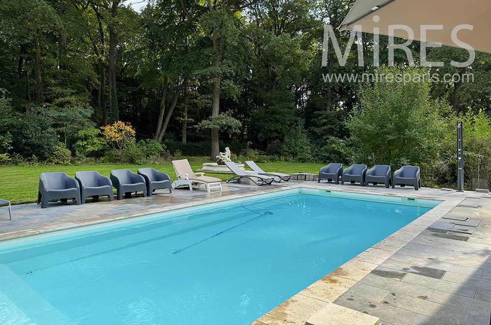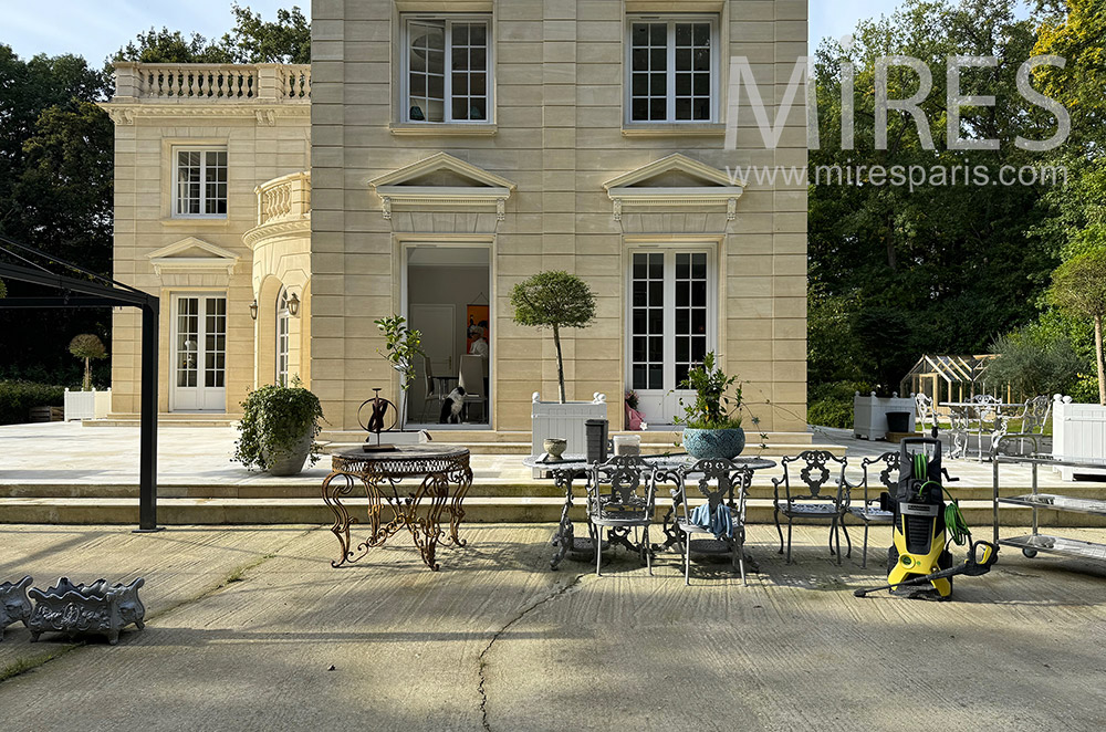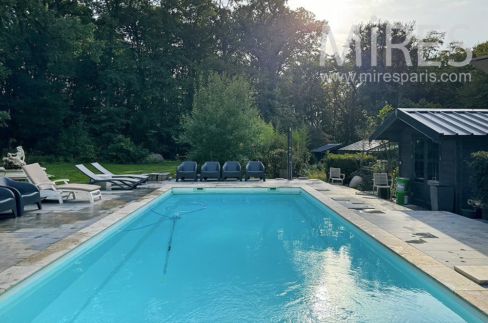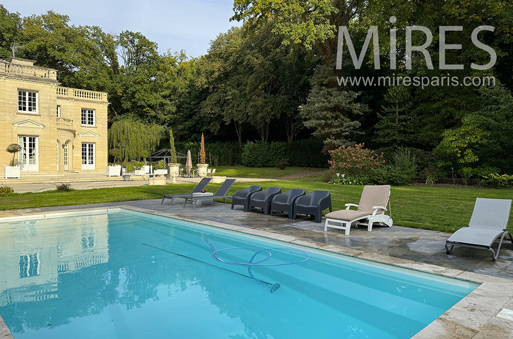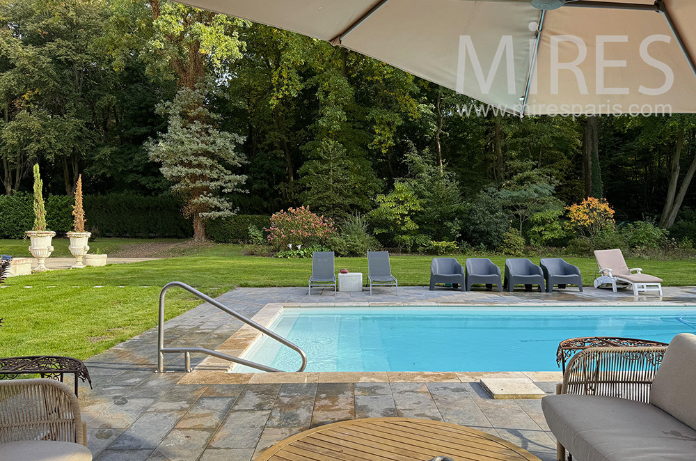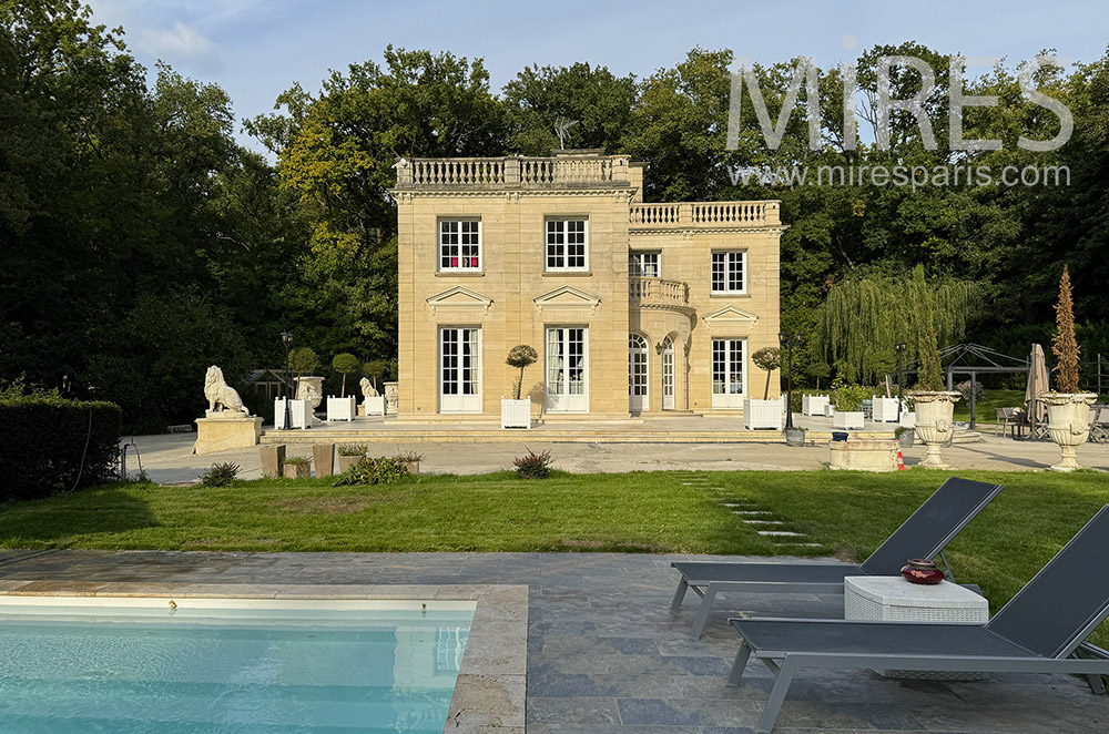 C2358 - Maison bourgeoise Visite rapide Visite complète Visite par pièce Île-de-France EntréeSalonSalle à mangerCuisineEscalierCouloirSalonChambreSalle de bainChambreSalle de bainRooftopCaveBuanderieGarageTerrassePiscine extérieure