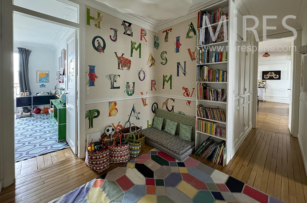 C2362 - Appartement parisien Visite rapide Visite complète Visite par pièce SalonEntréeChambreSalle à mangerSalonCouloirChambreSalle de bainBibliothèqueChambre d'enfantChambreSalle de bain