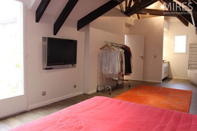 C0661 – Beams and bright colors in the attic Visite rapide Visite complète Visite par pièce Ile-de-France BedroomLoungeOutdoor PoolKitchenDining Room