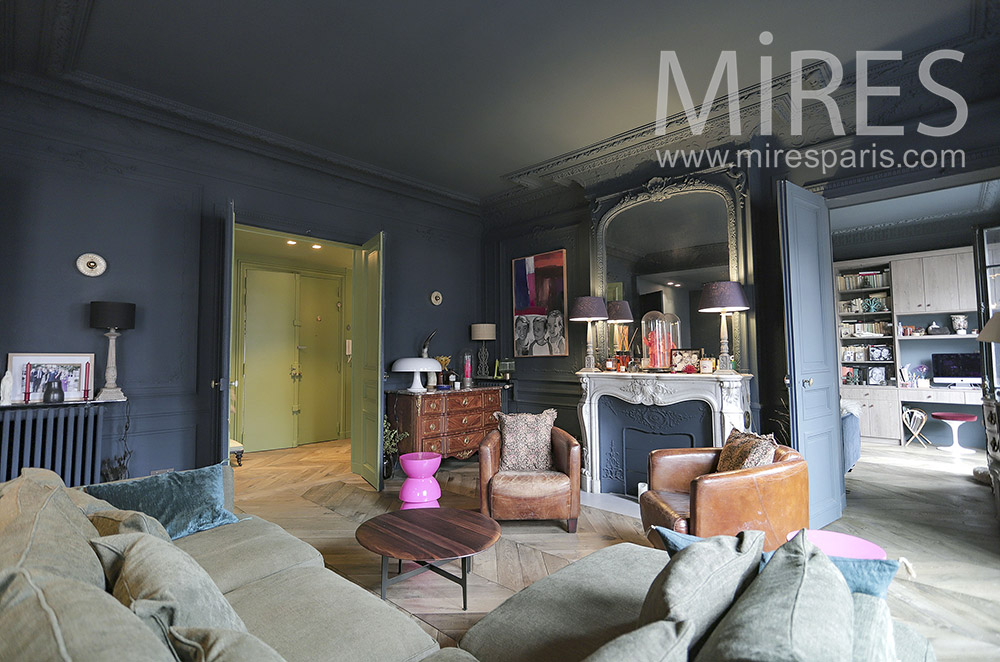 C2074 – Blue living room Visite rapide Visite complète Visite par pièce Paris CorridorEntryLoungeDining RoomKitchenHome cinemaBedroomBathroomBedroomBedroom