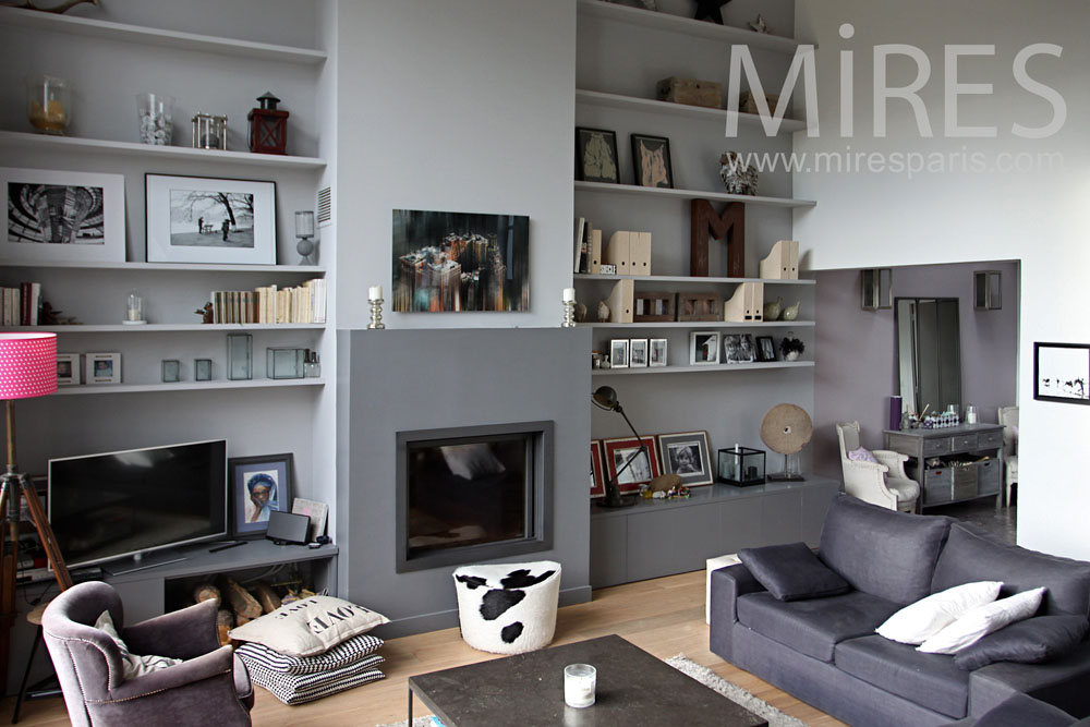 C0959 – Salon lumineux et chaleureux Visite rapide Visite complète Visite par pièce Île-de-France Chambre d'enfantChambre d'enfantSalle de bainTerrasseChambreCouloirChambre d'enfantBureauEscalierCuisine ouverteSalonEntréeCourSalon