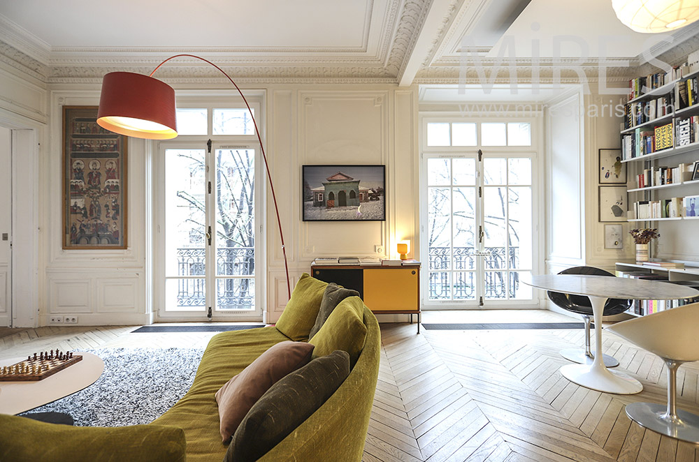 C1794 – Salon moderne avec bibliothèque Visite rapide Visite complète Visite par pièce Paris SalonCuisineChambreSalle de bainChambre d'enfantChambre d'enfantHome cinema