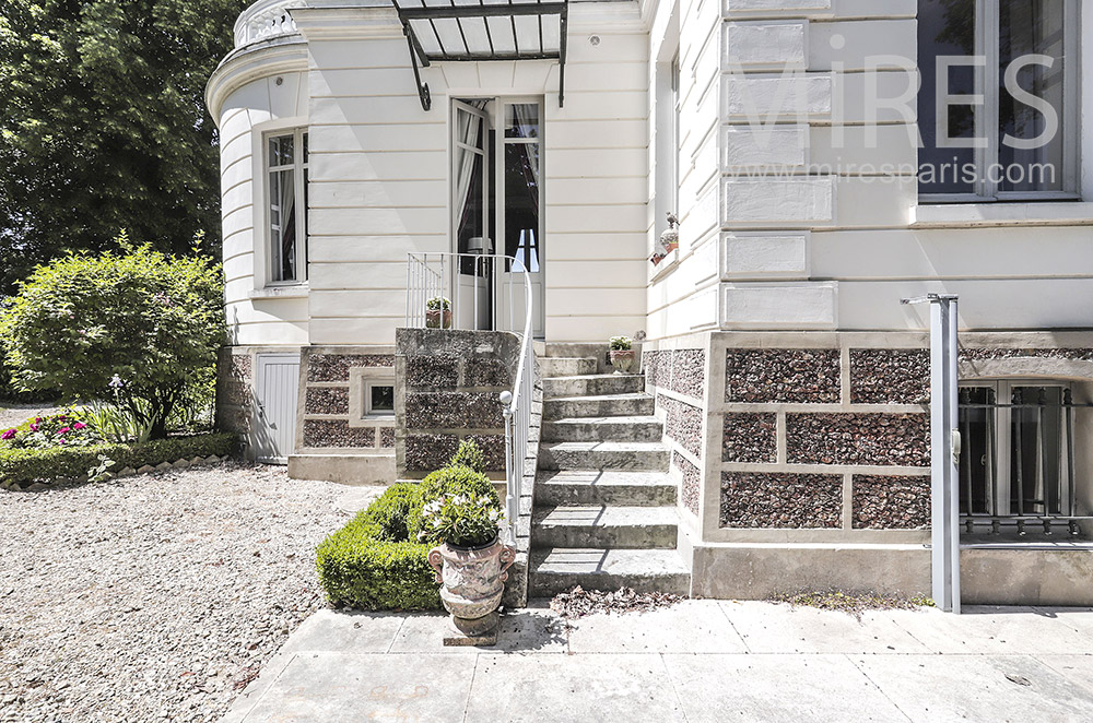 Terrace on the garden side. C2113 Visite rapide Visite complète Visite par pièce Ile-de-France EntryLoungeDining RoomKitchenTerraceStaircaseOfficeBedroomBathroomBedroomTerraceBedroomBedroomWorkshopBedroomCorridorBasementGymTerraceGardenGreenhouse and verandaGarage